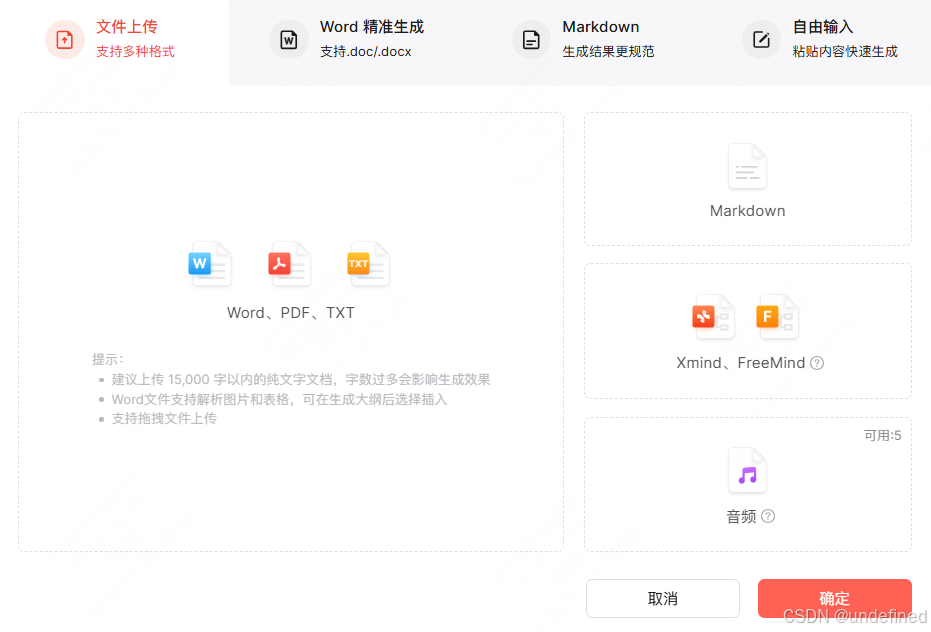 博思AIPPT 是一个专门做演示文稿生成的一站式 PPT 创作演示平台,兼容 Word/PDF/Markdown/TXT/思维导图/音频文件,导入文件后经由 AI 解析快速生成 PPT。如果你经常要处理那种“把 2 万字 Word 白皮书变 PPT”的苦差事,用博思AIPPT 最省事。