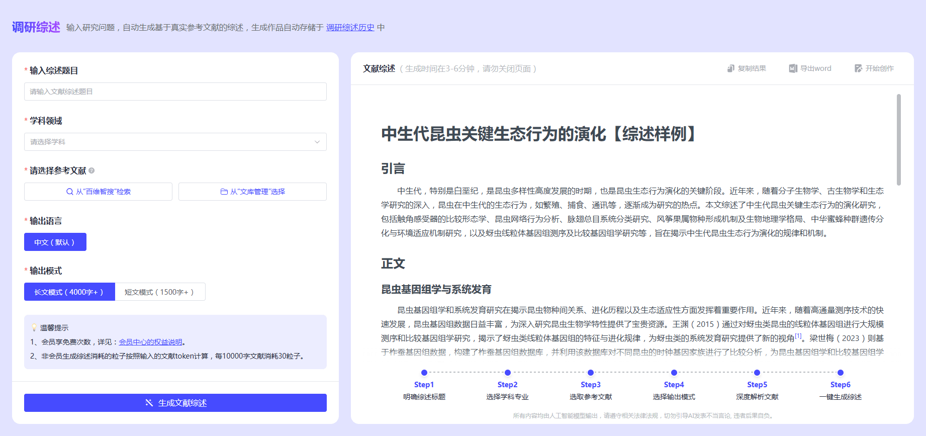 - 文献调研:1500字综述生成时间缩短至3-6分钟