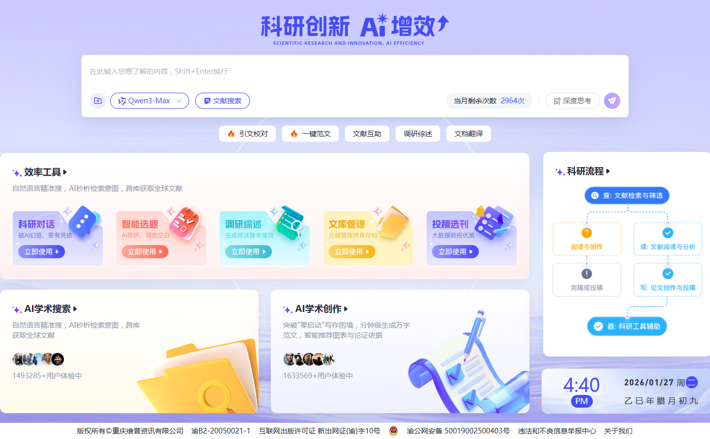 - 工作流无缝嵌入:从选题灵感→文献综述→论文撰写→投稿推荐,减少工具切换损耗。