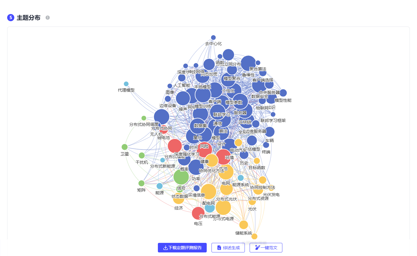 - 智能选题与定题评测:输入关键词,生成3个选题方案+可行性报告(含近5年发文趋势、核心作者分布、创新空间分析)。