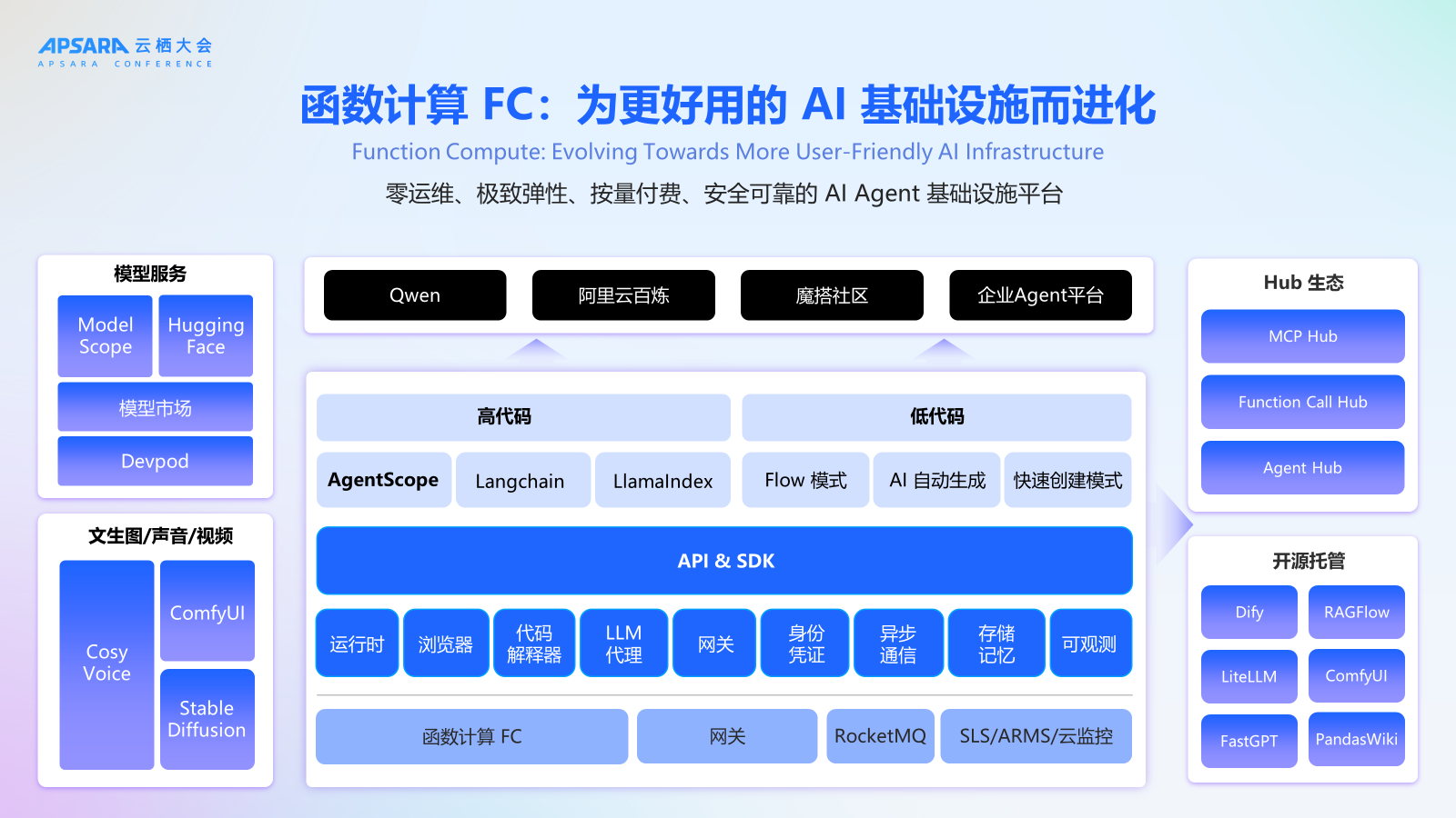 FunctionAI 是阿里云推出的一站式 AI 原生应用开发平台,基于**函数计算 FC **的 Serverless 架构,深度融合 AI 技术,为企业提供从模型训练、推理到部署的全生命周期支持。