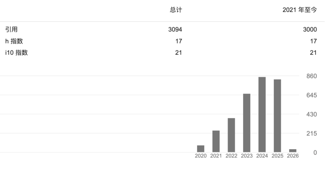 谷歌学术显示,齐炜祯的论文引用数已超过3000,h-index为17。
