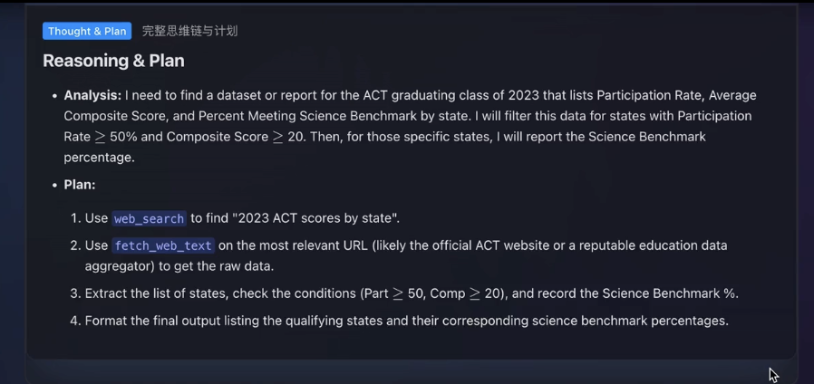 然后Agent开始做分析、规划任务,挑选可能会用到的工具。
