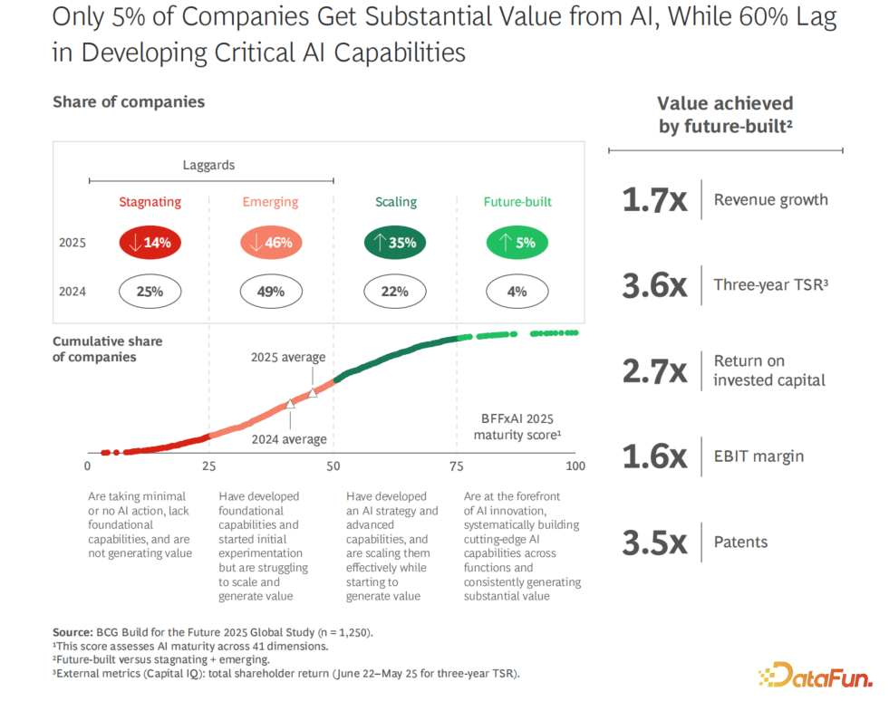真正做对的企业是怎么做的?波士顿咨询把它们称为"未来构建型企业"(Future-Built Firms)。这些企业的特征不是"试点多",而是"挖得深"。