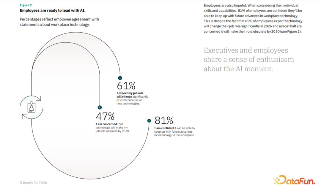 他们调查了 8,500 名员工,结果发现:81% 的员工对跟上 AI 充满信心,61% 愿意与 AI 协作,而最震撼的数字是——47% 的人愿意接受 AI 的管理。