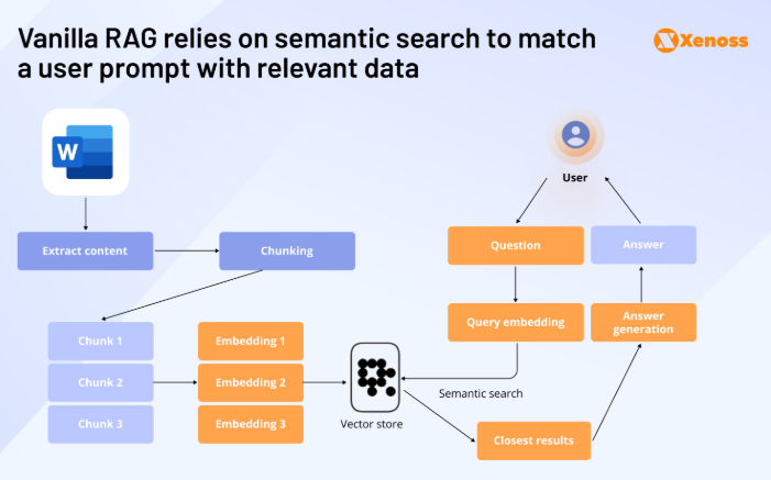 Vanilla RAG代表了在企业环境中实施检索增强生成的传统方法。这种方法利用向量数据库存储文档嵌入并检索上下文相关信息。凭借其经过验证的记录和灵活的架构,Vanilla RAG仍然是需要直接、基于事实的问答能力的组织的首选方案。