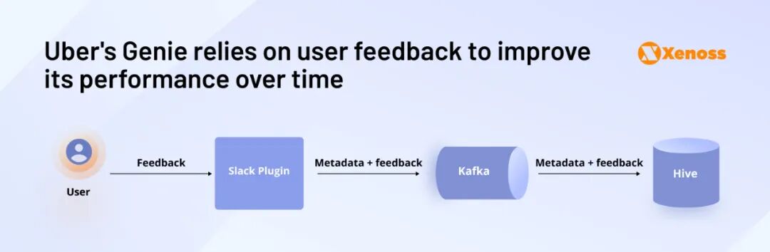 在Uber的知识库中,用户答案由Slack插件记录,上传到相应的Kafka主题,并流式传输到保存所有反馈记录的Hive表中。