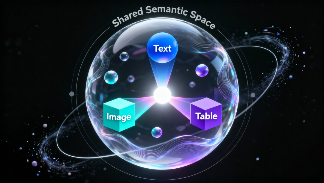 这要求系统具备将不同模态数据(文本、图像、音频、视频等)映射到统一语义空间的能力,即统一的跨模态表征。如果说传统文本RAG的AI只会说“英语”,那么多模态RAG则必须精通一门能将所有感官信息“同声传译”的通用语言。