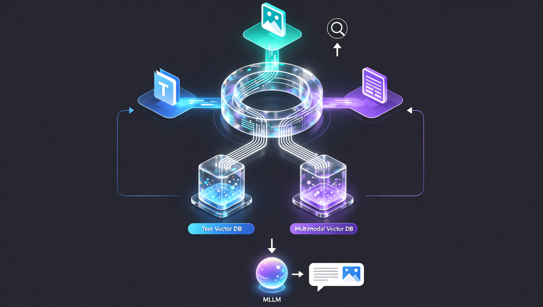 索引架构决定检索的灵活性与效率 。向量数据库的选择已不再局限于单一存储。MRAG 2.0及以后的架构常采用 并行维护双向量库 的策略:一个 文本向量数据库 存储文本片段和转化后的图像描述文本的向量;另一个 多模态向量数据库 则直接存储原始图像、音频或视频帧经过多模态编码器生成的向量。使用如PgVector、Weaviate、Milvus等支持过滤查询(如按文档来源、时间、类型筛选)的数据库,可以高效管理这些海量向量。