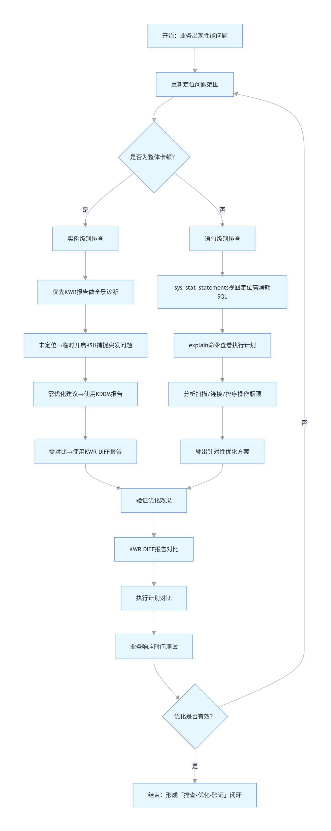 当实例级别排查排除了全局性问题,或定位到具体的高消耗SQL后,就需要进入语句级别排查——聚焦单条SQL语句(或批量跑批语句),分析其执行过程,定位具体的性能瓶颈,比如全表扫描、磁盘排序、索引失效等,这是性能优化的“最后一公里”。