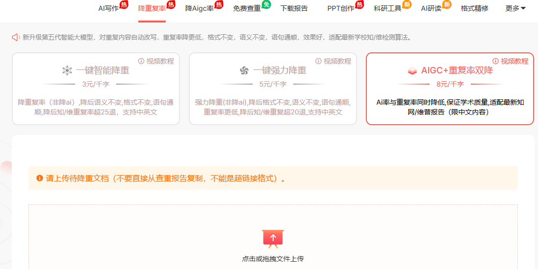 | 千笔 | 语义保留完整 | 高重复率论文处理 |