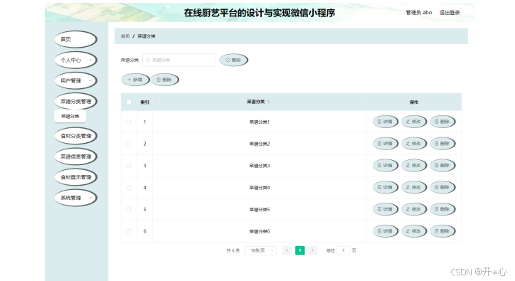 图5-2 菜谱分类管理页面