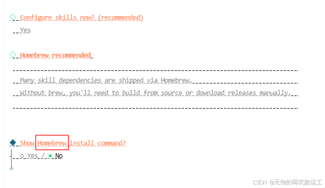 这里就开始配置他的技能了,Homebrew这里可以选择不配置,如下: