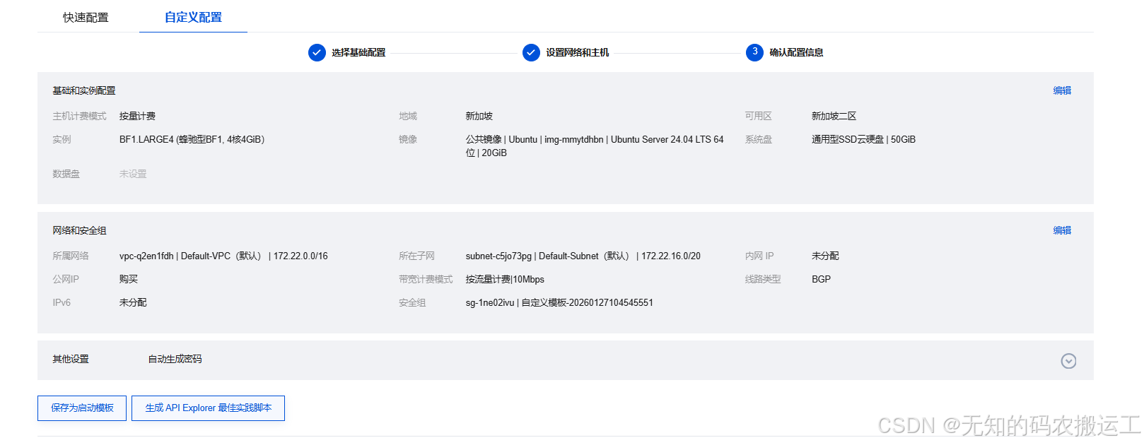 我这里就测试而言,我就付款一台按量计费的CVM来进行测试可以参考下这个配置:
