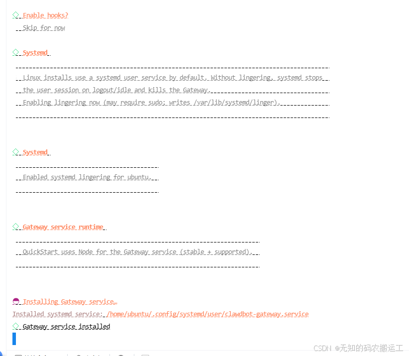 到这里的一步,就是说我的Clawdbot开始自己配置网关了,我们等待即可