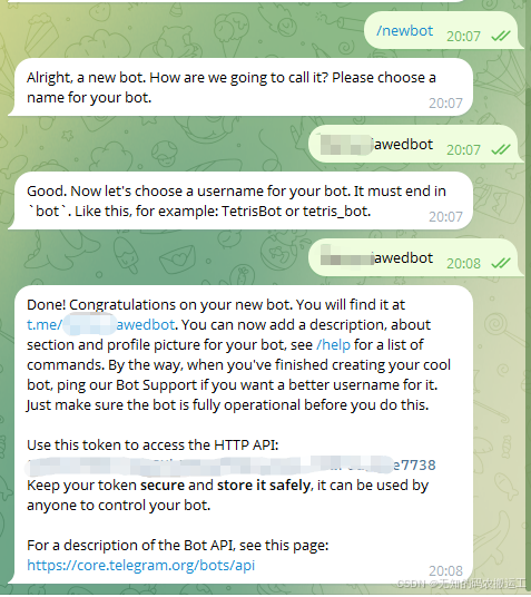 首先我们要去Telegram中创建一个机器人【@BotFather】按照我这个图中的内容就可以创建啦
