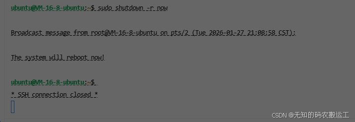 不用着急,还记得我们之前Clawdbot配置了网关了吗,这里需要重启一下,我这里比较暴力,直接重启机器。