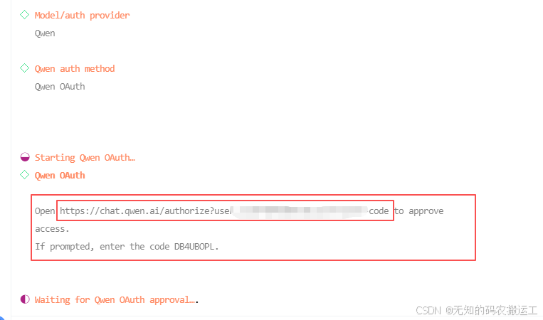 这个就是目前支持的模型,我们发现里面混进去一个国产的Qwen,其实也是可以配置的啦,因为我的Google模型没有订阅了,所以这里我就用白给的Qwen吧,这里Qwen是通过链接授权访问