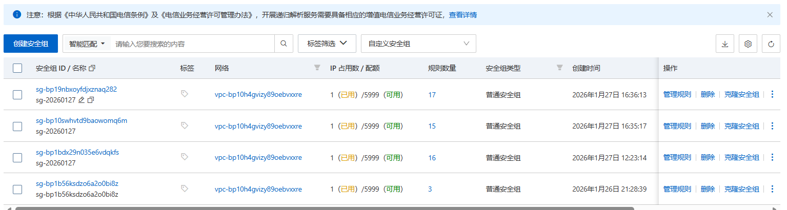 坑点:容器跑起来了,但客户端连不上。原因通常是安全组没开 UDP。 操作:去阿里云控制台 -> 安全组 -> 配置规则 -> 增加规则: