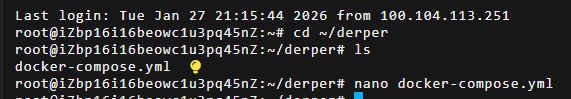 再nano docker-compose.yml 一次打开文件看是否保存,ctrl + x退出