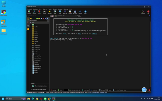 操作说明:打开本地Mobaxterm工具,按照伪分布式部署教程中的详细步骤建立与虚拟机的远程连接。