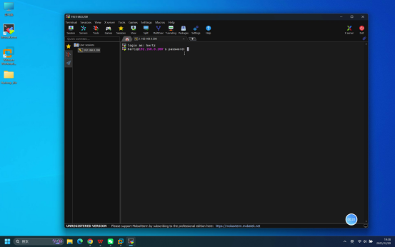 预期结果:Mobaxterm连接成功,进入连接等待登录状态。