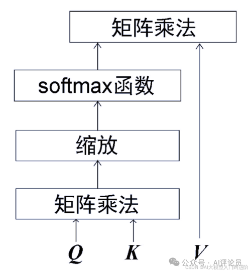 基于上述三个矩阵 Q 、K、V,就可以计算得出我们需要的句子中每个词与句子中其他词相关性的注意力矩阵了,具体步骤如下图所示: