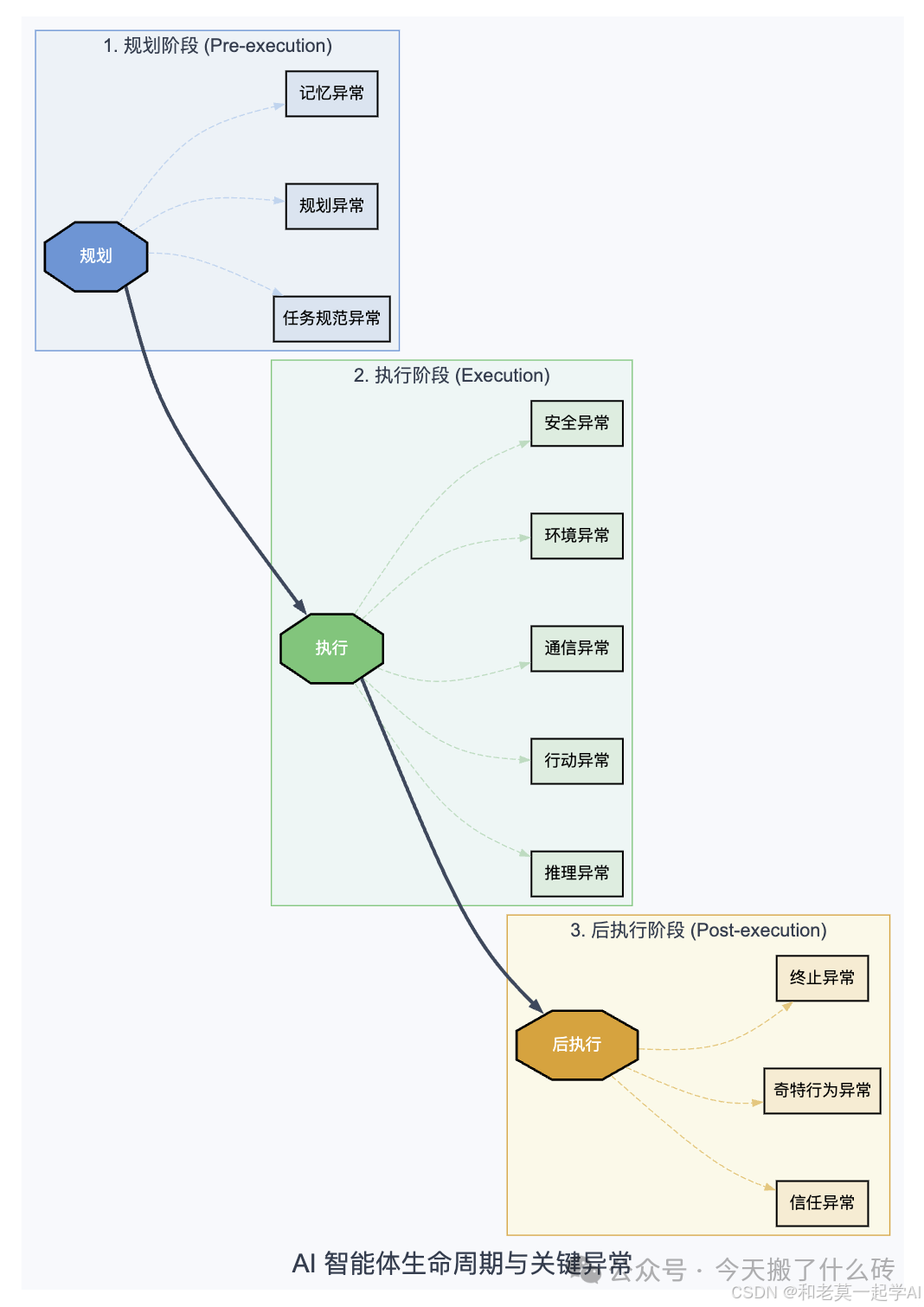 ·2. 执行阶段:推理异常、行动异常、通信异常、环境异常、安全异常