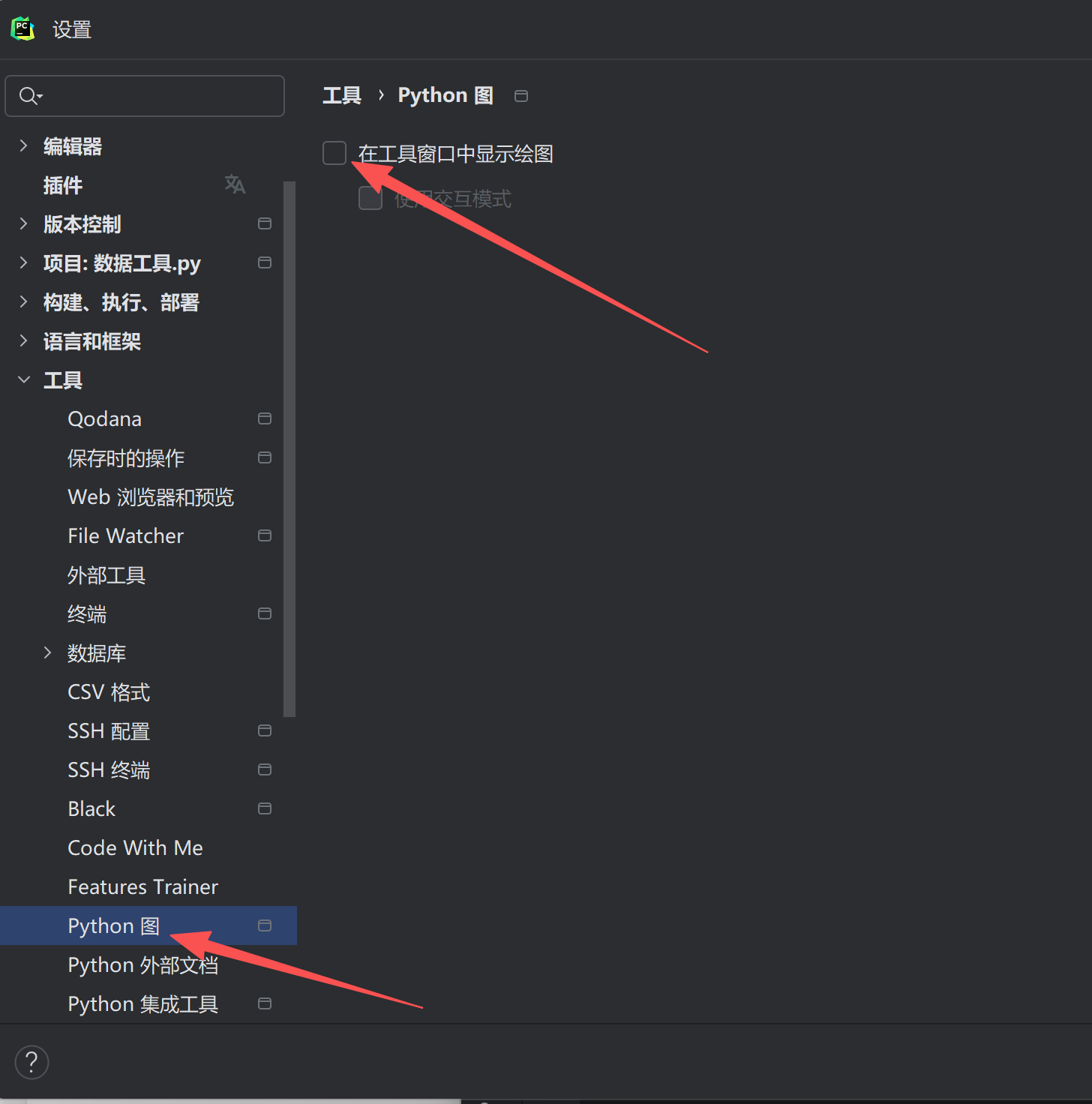 # 出现以下报错提示: === 正在绘制折线图 === Traceback (most recent call last): File "D:\Desktop\\编程与工具基础\数据工具.py", line 130, in <module> plt.show() # 弹出图表窗口 ^^^^^^^^^^ File "D:\soft\python3.12\Lib\site-packages\matplotlib\pyplot.py", line 613, in show return _get_backend_mod().show(*args, **kwargs) ^^^^^^^^^^^^^^^^^^^^^^^^^^^^^^^^^^^^^^^^ File "D:\soft\PyCharm 2024.1\plugins\python\helpers\pycharm_matplotlib_backend\backend_interagg.py", line 41, in __call__ manager.show(**kwargs) File "D:\soft\PyCharm 2024.1\plugins\python\helpers\pycharm_matplotlib_backend\backend_interagg.py", line 144, in show self.canvas.show() File "D:\soft\PyCharm 2024.1\plugins\python\helpers\pycharm_matplotlib_backend\backend_interagg.py", line 85, in show buffer = self.tostring_rgb() ^^^^^^^^^^^^^^^^^ AttributeError: 'FigureCanvasInterAgg' object has no attribute 'tostring_rgb'. Did you mean: 'tostring_argb'? 进程已结束,退出代码为 1 --------------------------------------------------------------------------------------- # 报错原因:PyCharm 的「Matplotlib 工具窗口后端」与你安装的 Matplotlib(3.10.8)版本不兼容,plt.show()触发了后端的不兼容方法调用。 --------------------------------------------------------------------------------------- # 解决方案: 关闭 PyCharm 的「Matplotlib 工具窗口绘图」(无需改代码,最便捷) 核心思路:让 Matplotlib 使用自身默认的绘图后端,而非 PyCharm 的内置后端,避免版本兼容问题。步骤如下: 打开 PyCharm 的设置窗口: Windows:顶部菜单栏 File → Settings(快捷键 Ctrl + Alt + S) 中文界面:文件 → 设置 在设置窗口左侧,依次展开 Tools → Python Scientific(中文界面:工具 → Python 图) 在右侧窗口中,取消勾选「Show plots in tool window」(中文界面:「在工具窗口中显示绘图」) 点击底部 Apply → OK 保存设置 重新运行你的代码,此时plt.show()会弹出独立的 Matplotlib 图表窗口,不再报错。