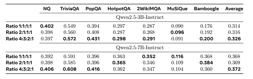 7B版本更厉害,平均EM得分0.372,进一步拉开了和少样本基线的差距。和监督基线比,多个数据集实现反超:TriviaQA数据集得分0.608,比Search-R1高0.3%;