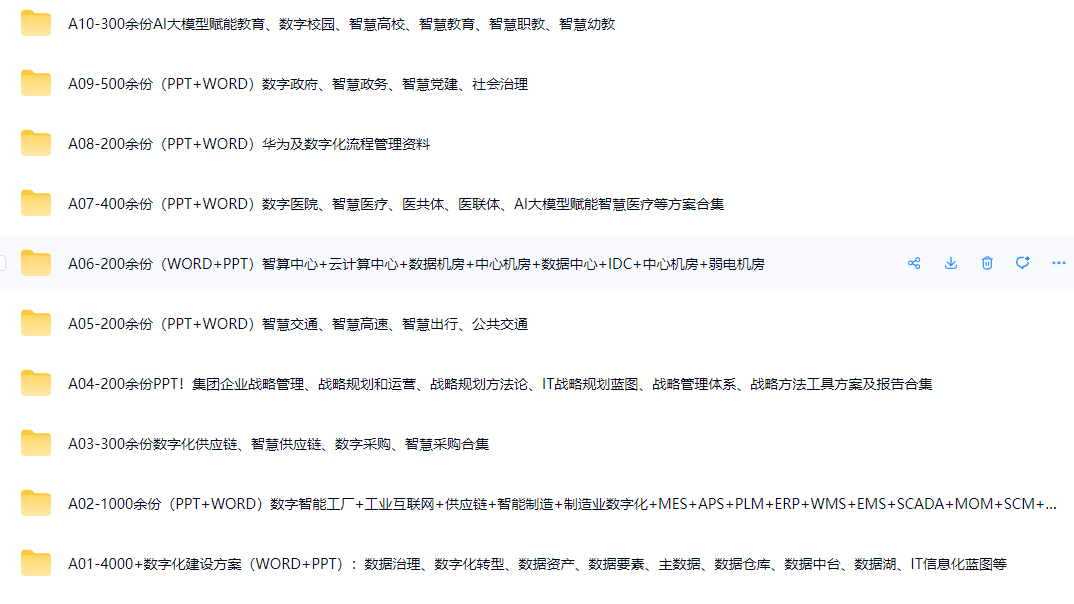 4000余份数字化合集:AI大模型及行业应用方案、企业数字化、数据中台、数据要素、数据资产、数据治理、数字化转型、IT信息化方案及报告等