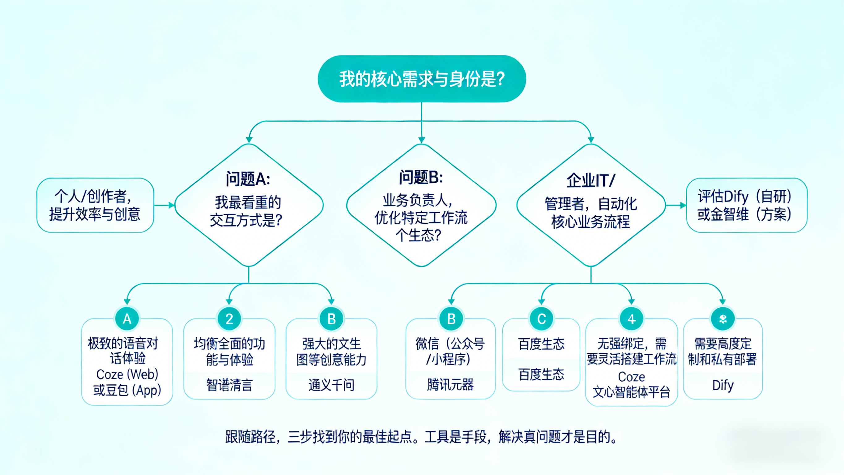 对于个人,最好的开始不是寻找“最强”的平台,而是用你最紧迫的一个场景,去启动那个 “刚好够用且能成长” 的工具,在行动中学习与迭代。