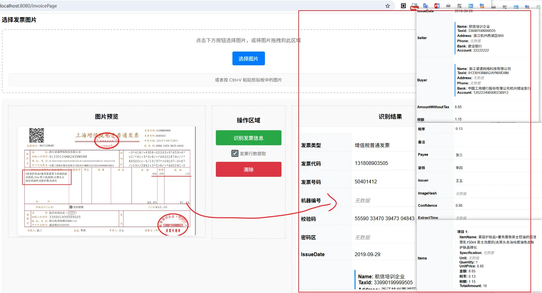 - 智能提取:零配置提取任意版式发票信息