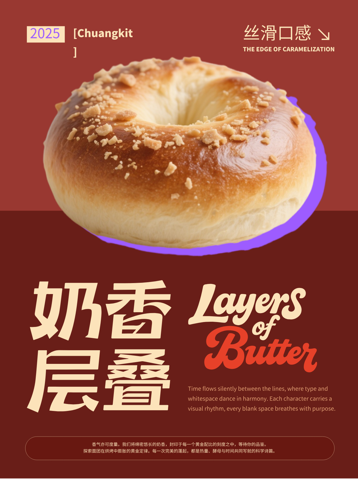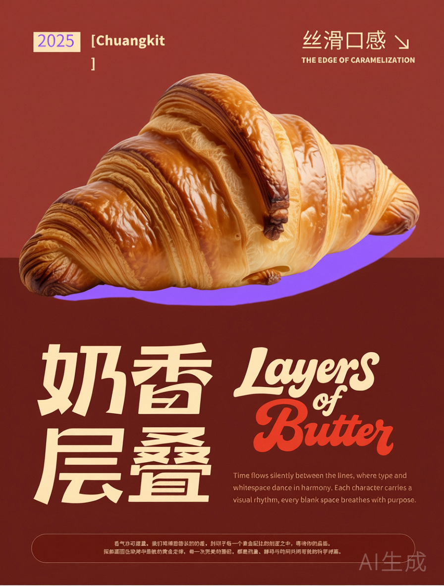 我想让它把贝果变成可颂,发现改图效果还是很惊喜的,细节也处理的很好,产品底部的紫色描边也呈现了出来。