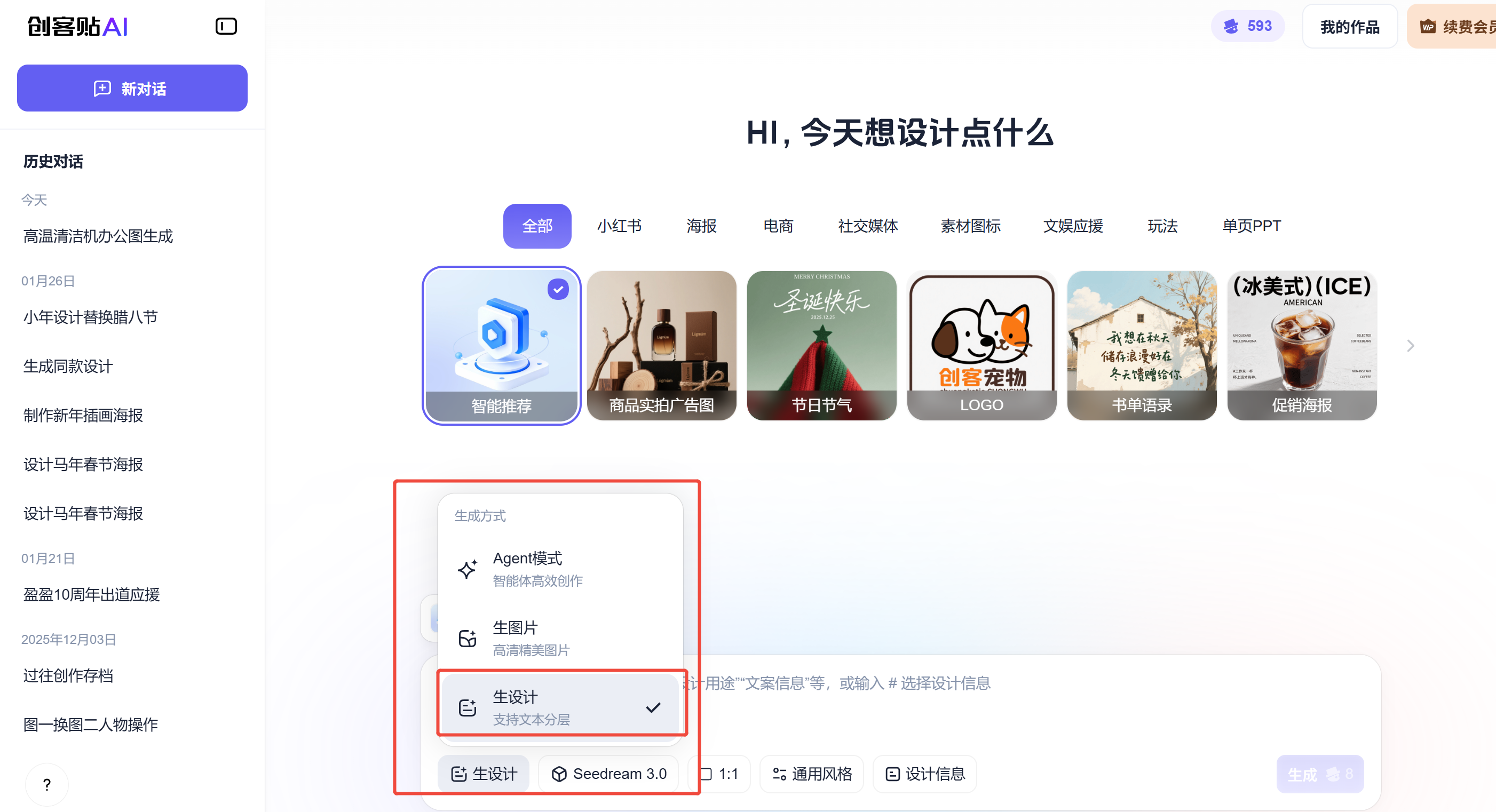 最后是这款模型,支持【生图片】、【生设计】,选择【生设计】生成的就是图文分层的工程文件~