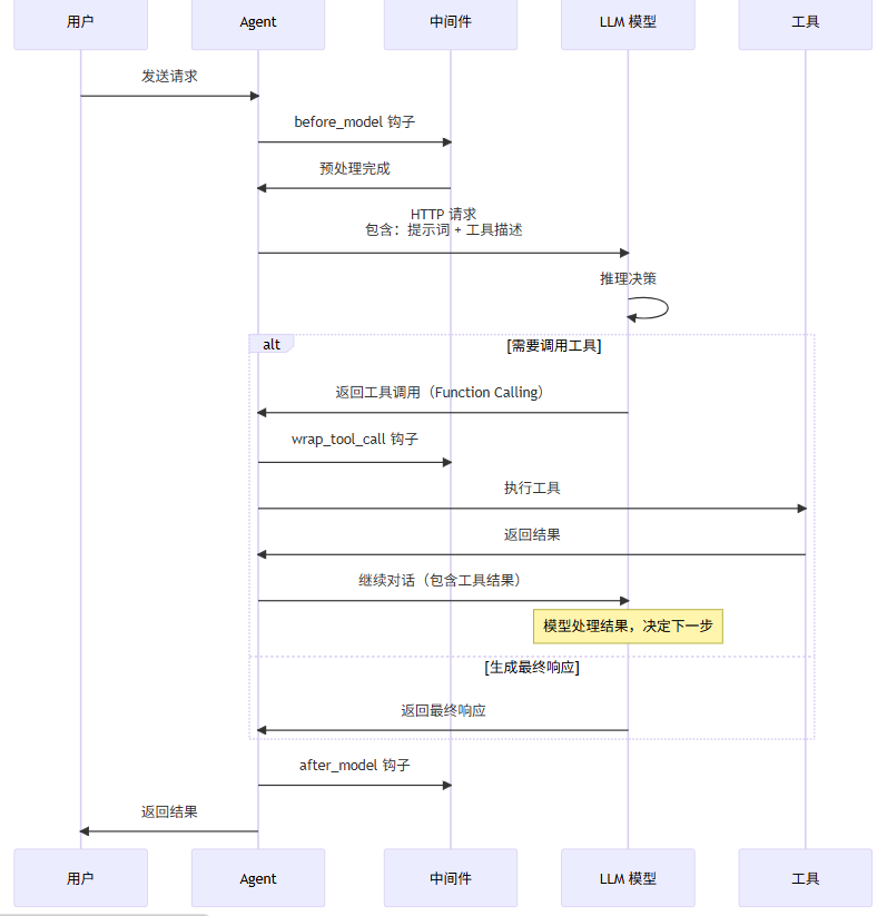 | Middleware | 功能插件 | 注入工具、增强提示词、扩展状态 |