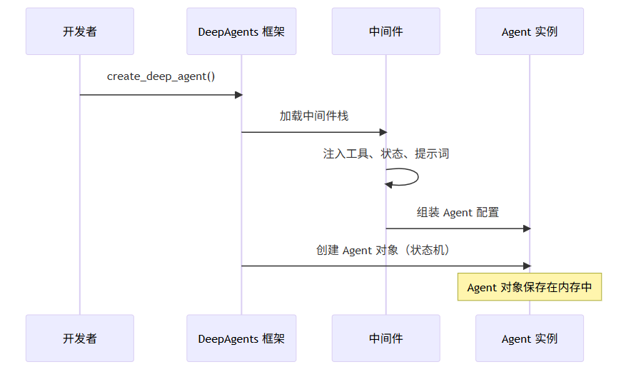 create_deep_agent()时创建 - 中间件在初始化时注入工具和增强提示词