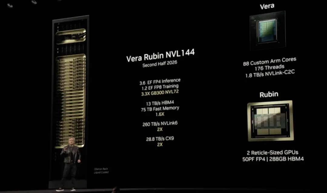 Vera Rubin NVL144:单域包括144颗Rubin GPU,支持FP4,单域带宽高达260TBps
