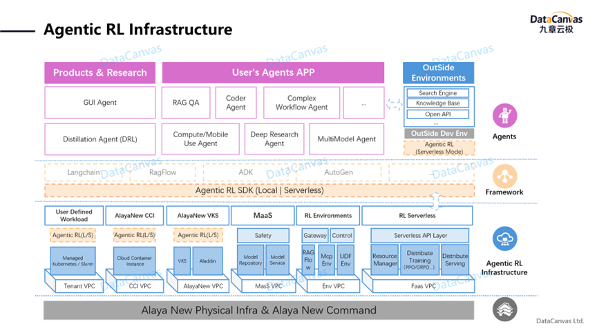 Alaya NeW Cloud打造前沿强化学习云平台,平台原生支持一键式Agentic RL 开发环境启动 、分布式极核Agentic RL训练,性能上实现训推分离与全流程加速,生态上预置多种主流Agent仿真环境,高效支撑强化学习技术的快速落地与创新突破,精准解决 AI 技术应用中的效率和成本等核心问题。目前,九章云极已在全球布局多个聚焦于加速计算优化的 AIDC 智算中心,持续赋能 AI 技术的高效应用与行业规模化落地。