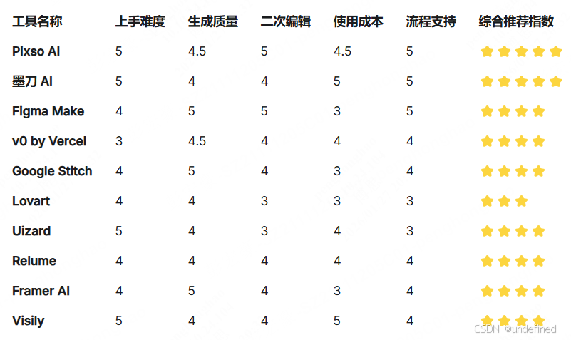 横向对比矩阵:10 款 AI 设计工具核心指标打分