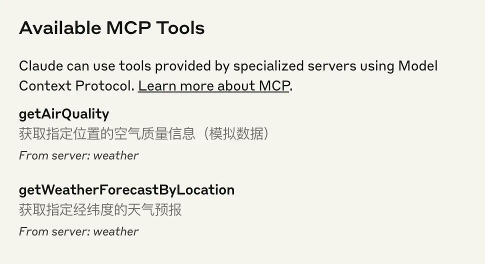 重启 Claude 之后,可以看到已经加载了 MCP 对应的工具: