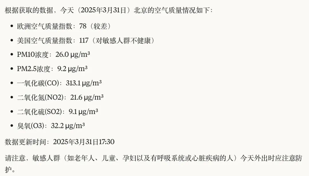 很显然,这一次 OpenManus 选择了我们集成的百度地图 mcp server,我们来看一下结果。