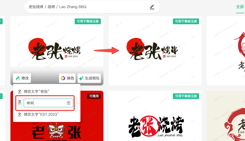 修改文字内容:如果Logo中包含文字元素,用户可以随时修改文字内容。这对于需要根据品牌发展或市场需求进行调整的用户来说非常方便。如下图: