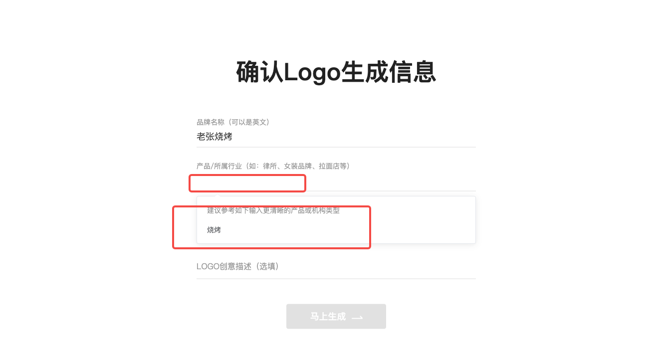 输入品牌信息开始生成Logo