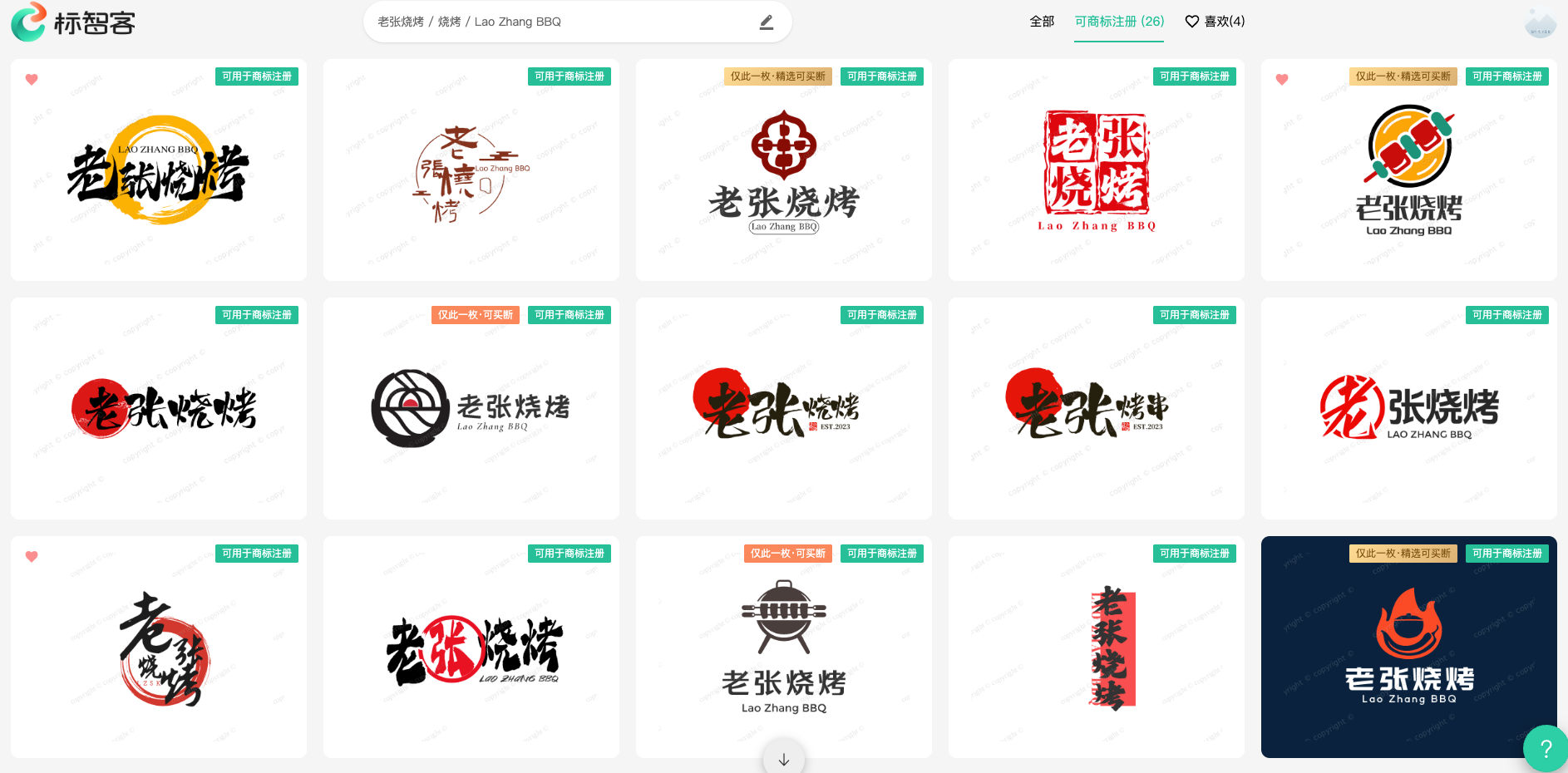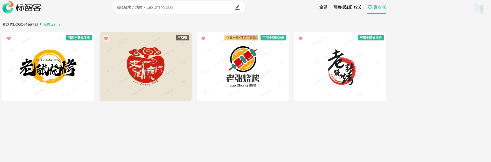 喜欢:用户在浏览Logo的过程中,如果遇到自己心仪的设计,可以将其标记为“喜欢”。之后通过该筛选方式,就能快速找到所有被标记的Logo,方便进一步对比和选择。如下图:
