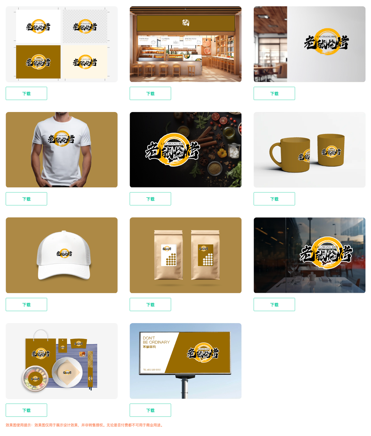 如果购买了Logo套餐,还可以下载11个效果图,效果图就只能下载PNG这一种格式的图片了。如下图: