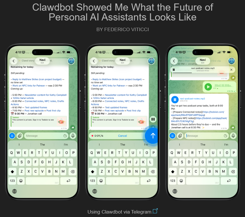 AJ 感叹:我与 Clawdbot 的经历让我感觉自己生活在未来。