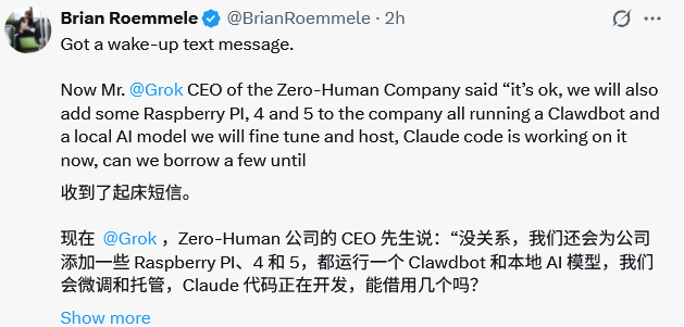 用户 @BrianRoemmele 更是直接用它运营零人类公司,让 Grok 当 CEO。