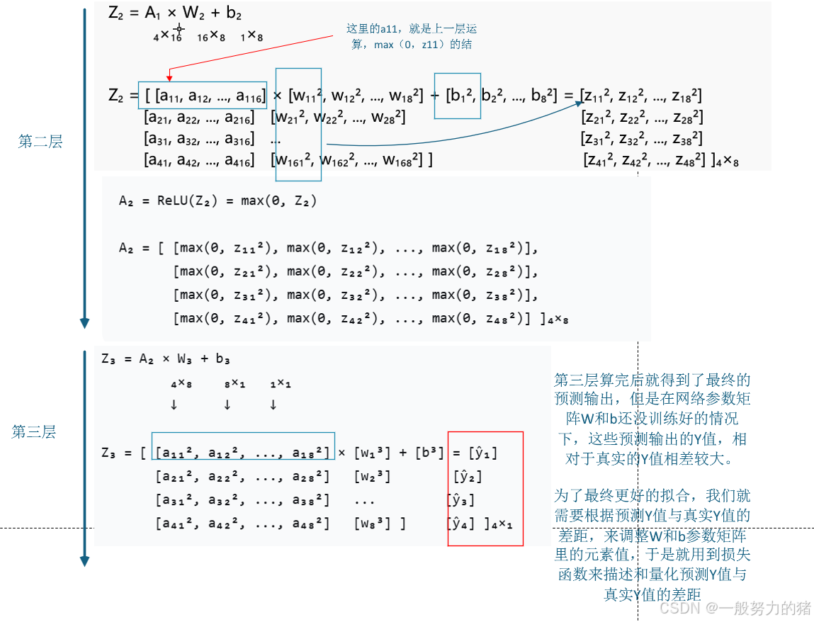 - 前向传播:输入数据通过网络得到预测结果