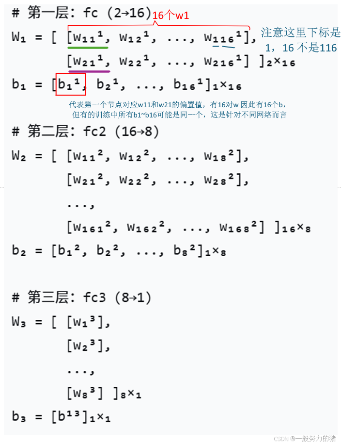 整个网络的参数部分,表示成矩阵如下: